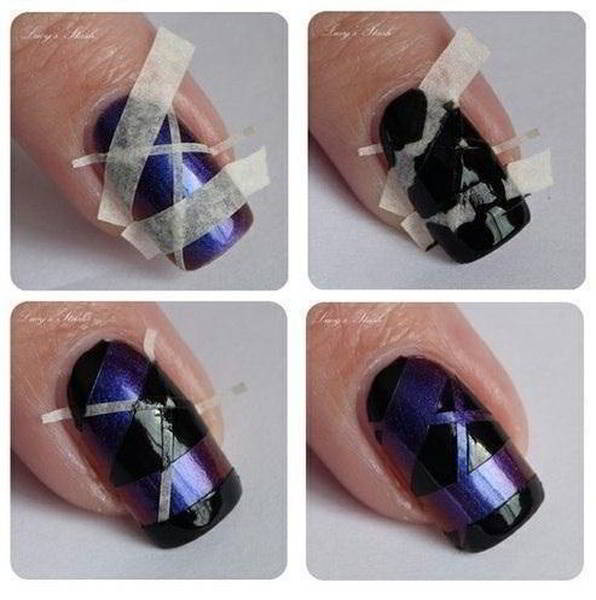 На длинных черных ногтях интересно смотрится паутинка. Этот дизайн набирает популярность с каждым днем. Он кажется на первый взгляд простым, но смотрится очень красиво и новомодно. Стандартный вариант — белая паутинка на черной подложке. Но можно отойти от классики и сделать что-то креативное. Необычно будет смотреться на черном фоне паутинка красного, серебристого, розового и зеленого цвета. Самый яркий дизайн можно создать при помощи разноцветных полосок.