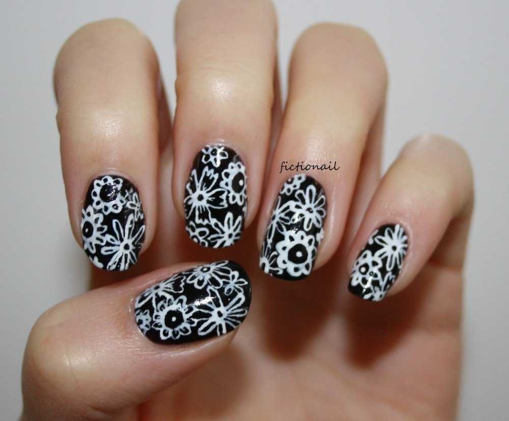 Сочетаемость ч/б маникюра с другими цветами и декором