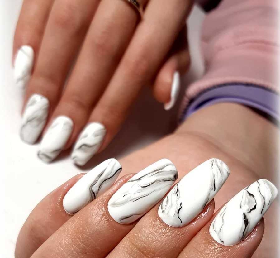 Мраморный черно-белый маникюр 2022 фото идеи