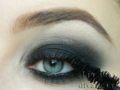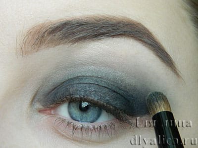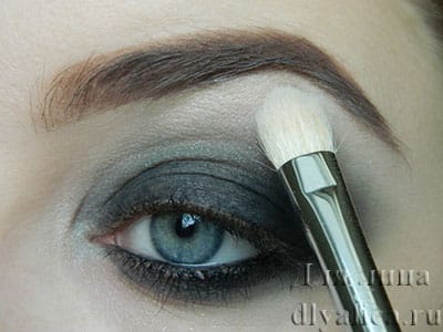 Женщинам, обладающим голубыми глазами, рекомендуется остановить свой выбор на прохладных тонах. Make-up предпочитает использование всех оттенков серого, серебристого, сиреневого, бирюзового и бежевого цвета. Если вы приняли решение выполнить дымчатый make-up, стои сконцентрироваться на оттенках коричневого, песочного и баклажанного. Оригинальные идеи темного мейк-апа для голубых глаз вы сможете просмотреть на фото: идеи для серых и голубых глаз.
