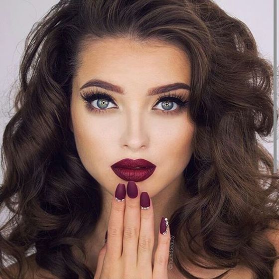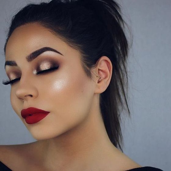 Темный макияж с красной помадой – настоящая классика. Такой яркий образ подходит для любого типа внешности, будет уместным практически на любом празднике