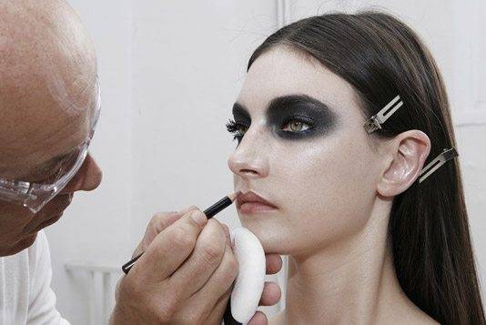 Хоть этот макияж выполняется только в одном цвете и кажется совсем простым, но требований к нему достаточно много. Одними из самых важных является чистота выполнения и стойкость. Для чистоты лучше всего предварительно перед макияжем нанести тонкий слой тона, чтобы выровнять цвет лица и век. Уже после завершения макияжа глаз убираем то, что осыпалось и наносим финишный слой тональной основы.