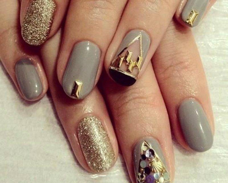Советуем не просто покрыть лунки лаком оттенка драгоценного металла, но выделить их с помощью стразов, блесток. а вот база может быть какой угодно.