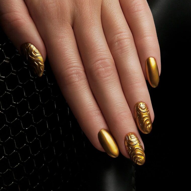 Золотой маникюр с дизайном: лучше идеи в 2024