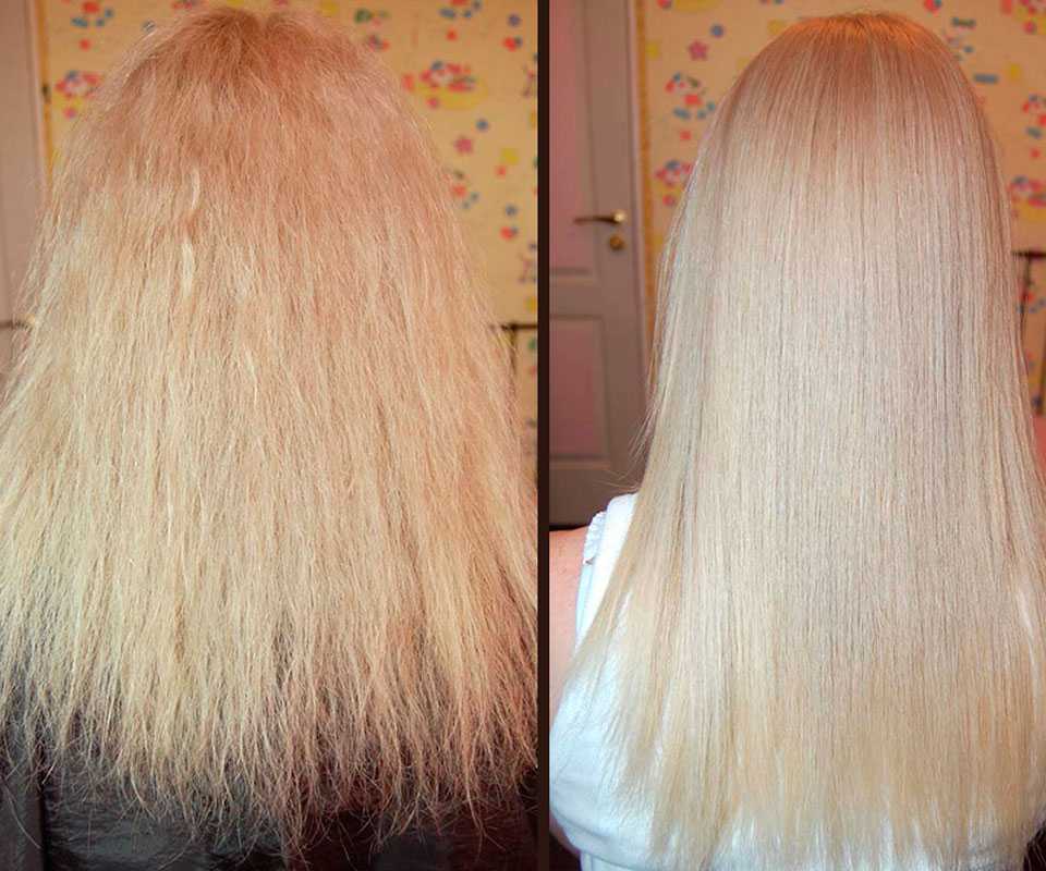 - Размягчение чешуек и разглаживание прядей по всей длине.