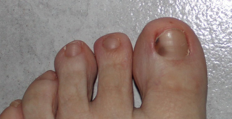 Если ногти на больших пальцах ног потемнели по этой причине, пятно обычно постепенно меняет цвет, форму и локализацию, как обычный синяк под кожей. Такие гематомы могут принести не только боль и неудобство, но при неблагоприятном исходе стать причиной воспаления и потери ногтя.