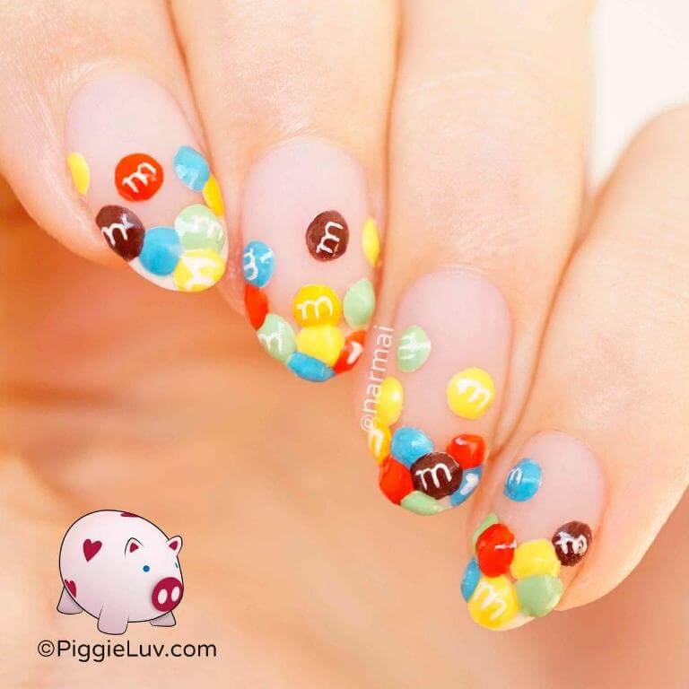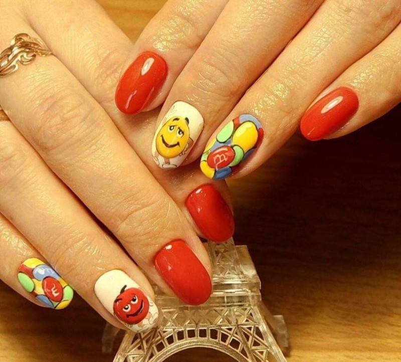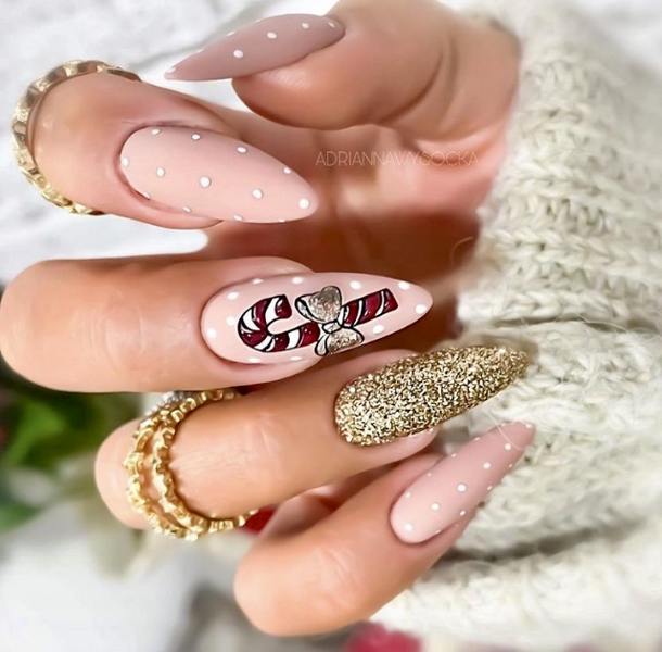 Подобный маникюр будет особенно актуален в канун Нового года, потому что традиционно этот праздник не обходится без сладких подарков. Этот вид маникюра отличается многогранностью дизайна и разнообразием декора.