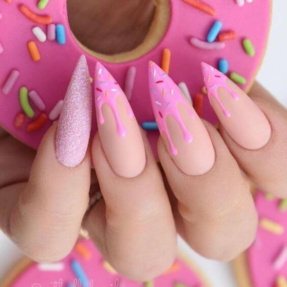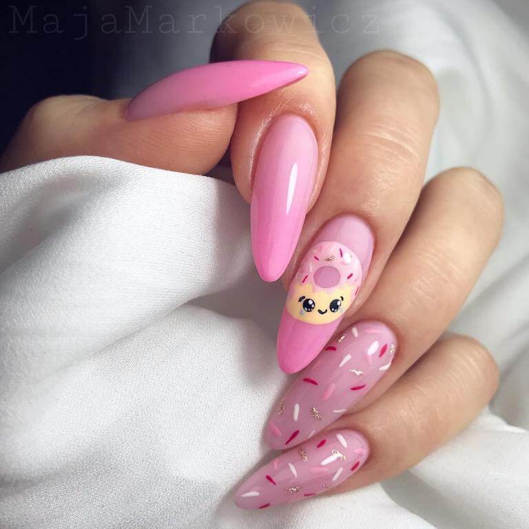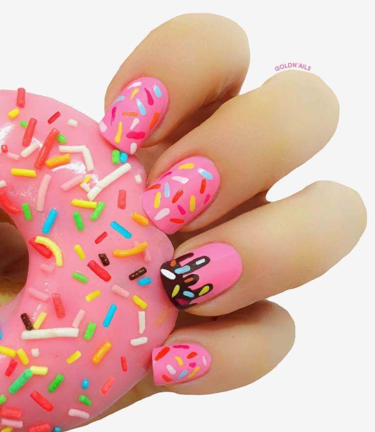 Сладости любят и взрослые, и дети. Поэтому мы уверены, что эта идея откликнется в сердцах многих из вас. Нежные оттенки глазури, стекающей с пончиков и мягкие кексы с ароматной начинкой никого не оставят равнодушным. Так почему бы не решиться на нейл-арт в таком аппетитном стиле?