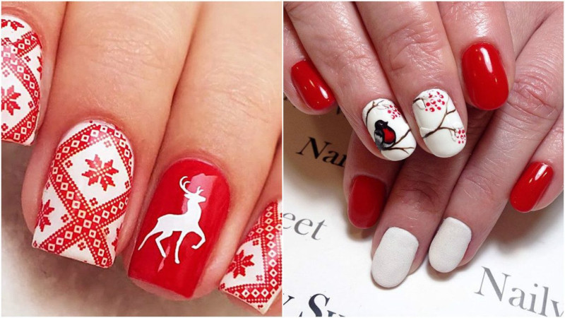 Чтобы внести немного ярких красок, можно будет нарисовать снегирей, шапочки и рукавички, или покрыть пару ноготков интересным норвежским орнаментом.