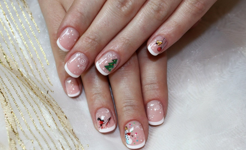 При создании новогоднего френча стоит учитывать, что толщина улыбки зависит от длины ногтевой пластины. Чем короче ноготь, тем тоньше должна быть улыбка. При небольшой длине ногтя лучше всего выбрать тонкие и контрастные линии улыбки. В таком случае ногтевая пластина будет смотреться аккуратно, изящно и красиво.