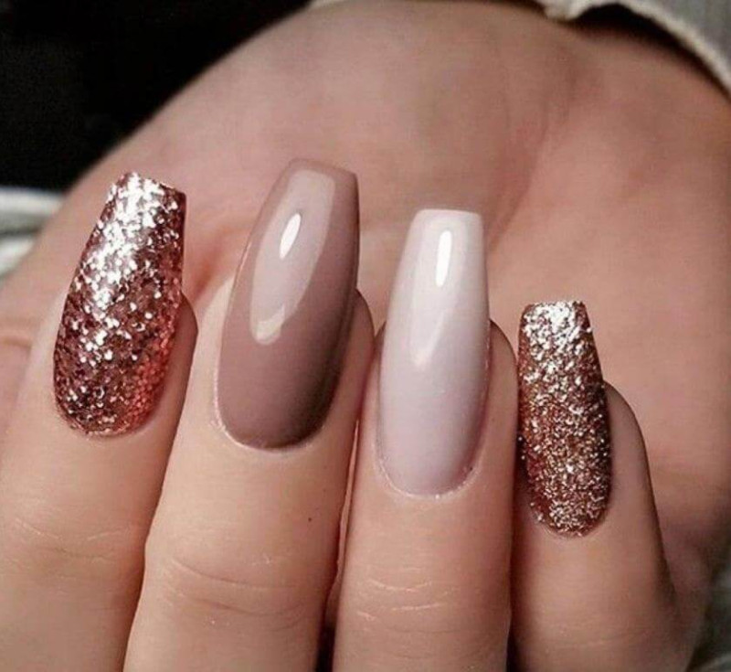 Оттенки шоколада является настоящим трендом этого сезона. К тому же теплые коричневые цвета отлично подходят для праздничного французского маникюра. Шоколадные и кофейные оттенки на ногтях создают ощущение тепло, уюта и дома. Если добавить в такой дизайн немного блеска и яркости, то получится невероятно красивый и необычный французский маникюр на Новый год.