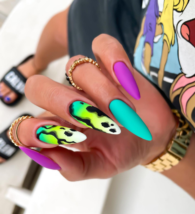 Нейл-тренды зимы 2023 предполагают буйство красок и сияние, поэтому в маникюре можно смело предаваться полету фантазии. Можно взять только один тон или скомбинировать несколько. В моде как глянцевое, так и матовое покрытие различных цветов.