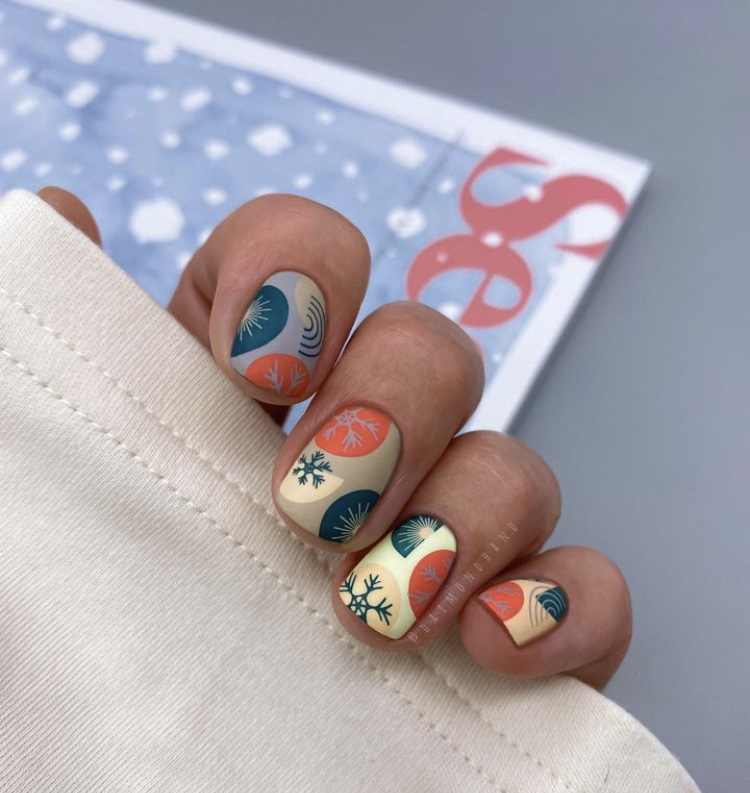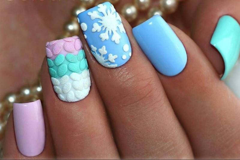В этом праздничном Новогоднем сезоне, минималистичный дизайн прекрасно впишется в любого цвета Новогодний наряд. Очень стильно и легко будут смотреться пастельные цвета с небольшими акцентами в виде рисунка снежинки, нескольких аккуратных страз или каплей блесток.
