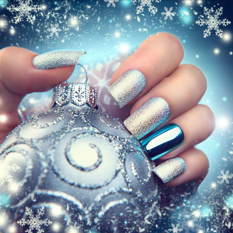 16 дизайнов голубого новогоднего маникюра на 2024 год