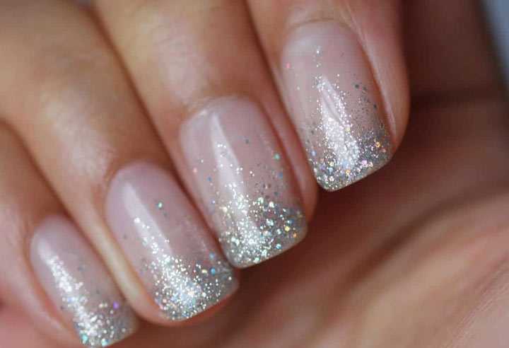 Сначала выберите откуда пойдет блестящая растяжка: от основания или края ногтя. В этом месте концентрация блесток будет больше, а затем будет сходить на нет. На выбранное начало рисунка наносится полоса блестящего гель-лака шириной 1-2 мм. Потом с помощью веерной кисти стоит растянуть эту полосу на другую сторону ногтя и просушить слой. Повторите эти этапы примерно 3 раза. С каждым разом наносите полоску тоньше и растягивайте ее все меньше.