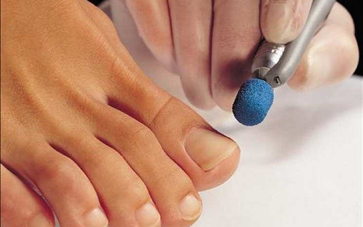 В ходе аппаратного медицинского педикюра проводится обработка ногтей, околоногтевых валиков и кожи стоп. В первую очередь различными видами насадок удаляется пораженный грибком слой ногтевой пластины и подногтевой гиперкератоз. При этом биологическая доступность противогрибковых кремов, гелей и растворов увеличивается на 80 – 90%.