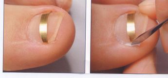 Можно приподнять вросший угол ногтевой пластины, который травмирует кожу. Затем взять маленький марлевый тампон и поместить его в зазор между кожей и ногтем, так, чтобы край ногтя постоянно был приподнятым.