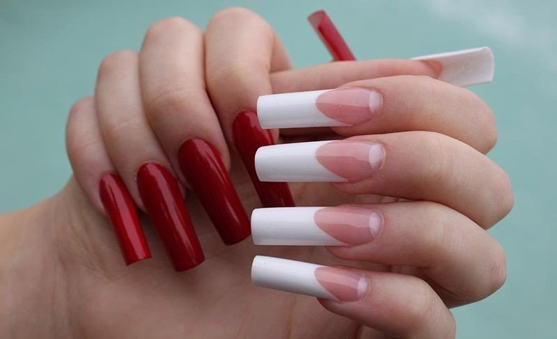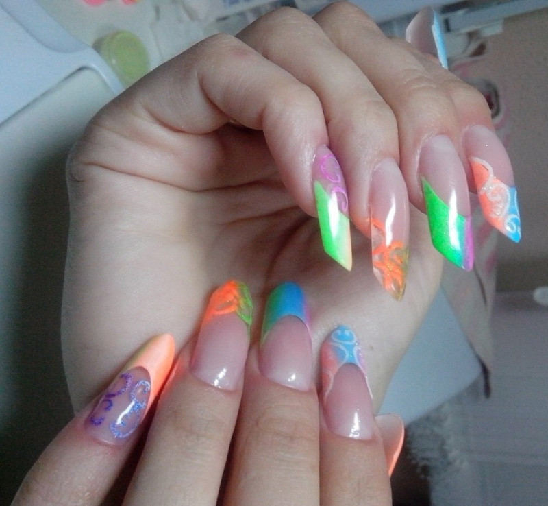 Наиболее востребованным вариантом маникюра остаётся наращенный френч. Арочное моделирование замечательно вписывается в такой дизайн. Для данного вида наращивания идеально подходит как классический френч, так и французский маникюр различными оттенками лака. Очень красиво выглядят темные кончики ноготков на нейтральном фоне. В качестве летнего маникюра часто выбирают яркие неоновые покрытия.