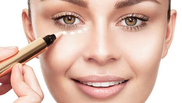 - визуального омоложения при нанесения под глаза, на скулы;
