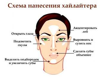 Как наносить хайлайтер схема его расположения на лице ясна, что касается конкретных шагов по нанесению, то они могут быть такими: