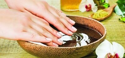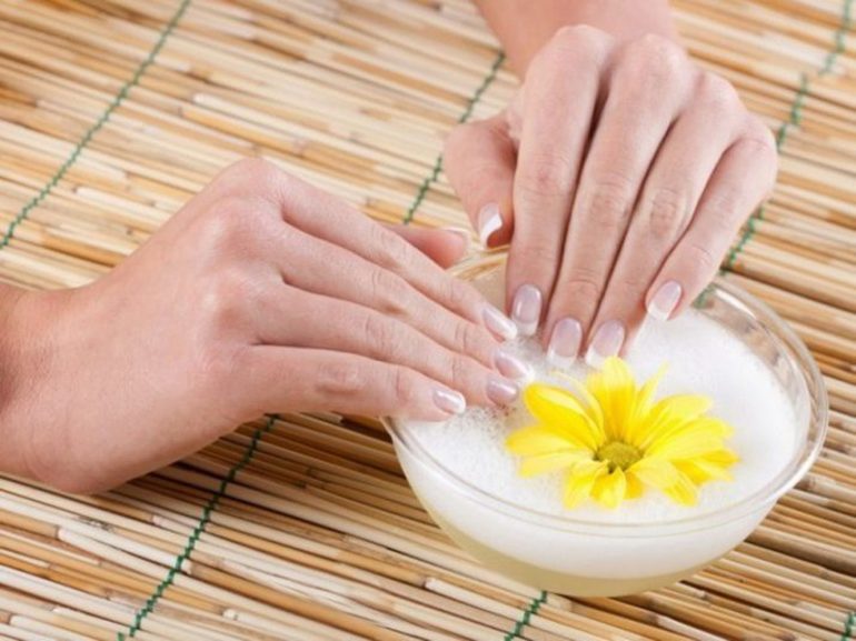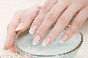 Разведите две чайные ложки морской соли в стакане горячей воды. После остывания окуните пальцы на 15 минут в раствор. Такие ванночки нужно делать 2 раза в неделю, а после них лучше наносить смягчающий крем для рук.