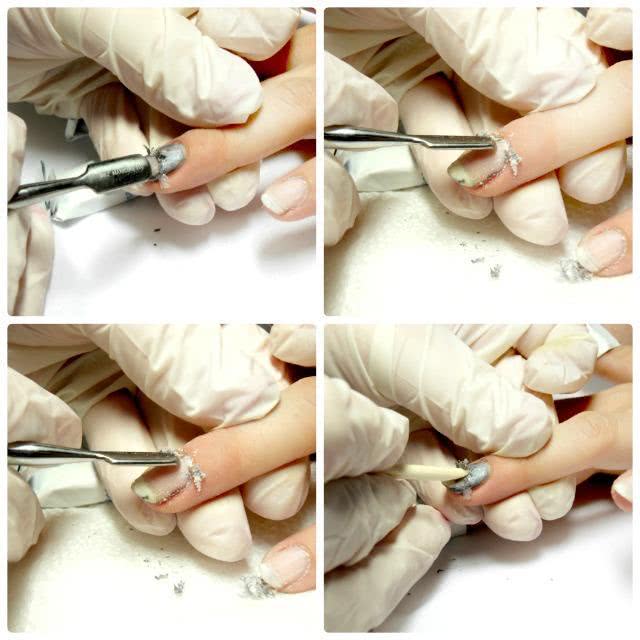 - При удалении пользоваться апельсиновой палочкой, или другим неагрессивным материалом. При использовании металлических предметов ноготок будет повреждаться намного сильнее