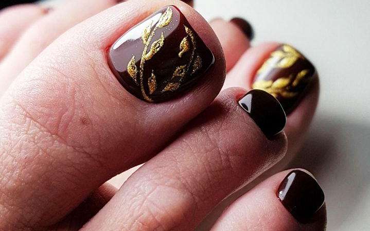 Фото-подборка лучших идей коричневого педикюра 2023 от нейл-мастеров