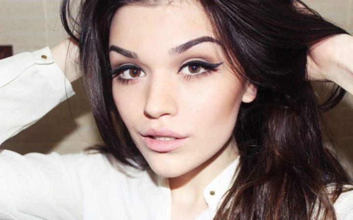 Брюнеткам с голубыми глазами хорошо подходит более широкая форма бровей, а также насыщено темно-коричневый тон. Более толстый край, начиная от изгиба носа, с легким изломом чуть дальше середины и тонкий хвостик – окончание. Такая форма подойдет девушкам с овальным типом лица, и поможет раскрыть разрез глаз.