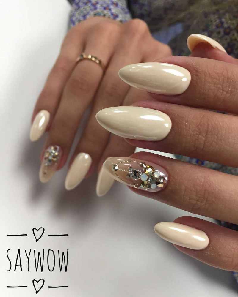 Остромодный вариант – имитация ювелирных украшений. На одном ногте изображают жемчуг, бриллианты, цепочки различных видов, кольца, бусы.