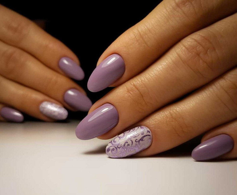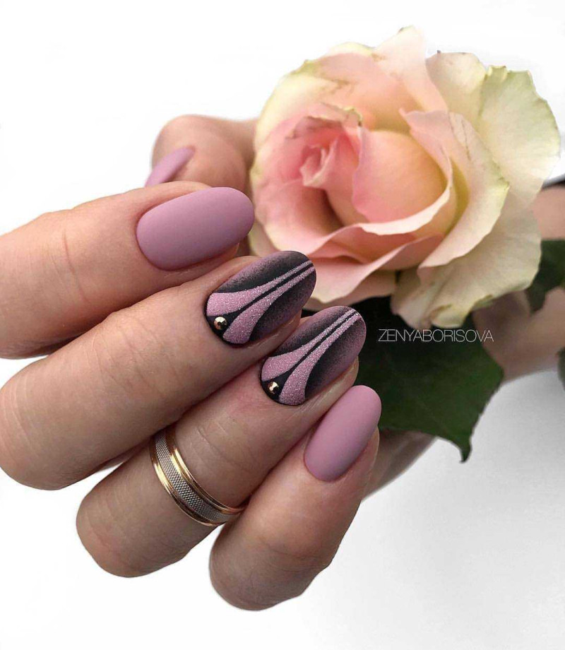 Рисунки выполняются изящными плавными линиями и хорошо смотрятся в тандеме с матовым покрытием на соседних ногтях.