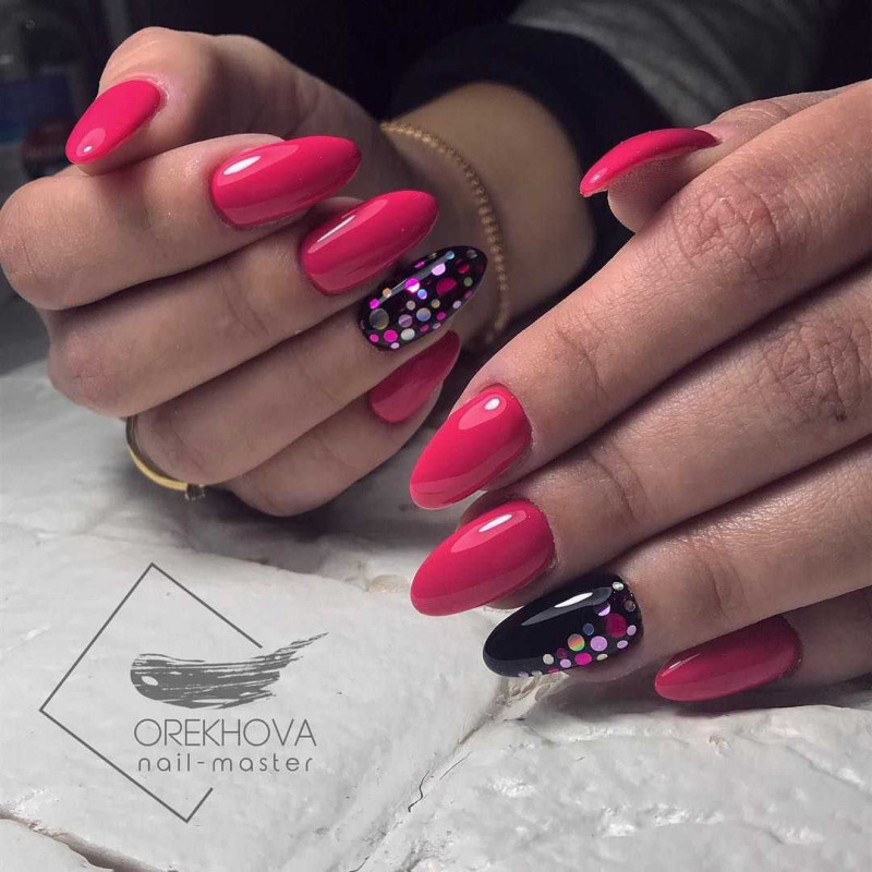 Эта техника предполагает использование на ногтевой пластине сочетаний ярких противоположных цветов, которые привлекают внимание и становятся ключевыми точками в образе. Стоит применять такие комбинации: с их помощью можно создать новый образ