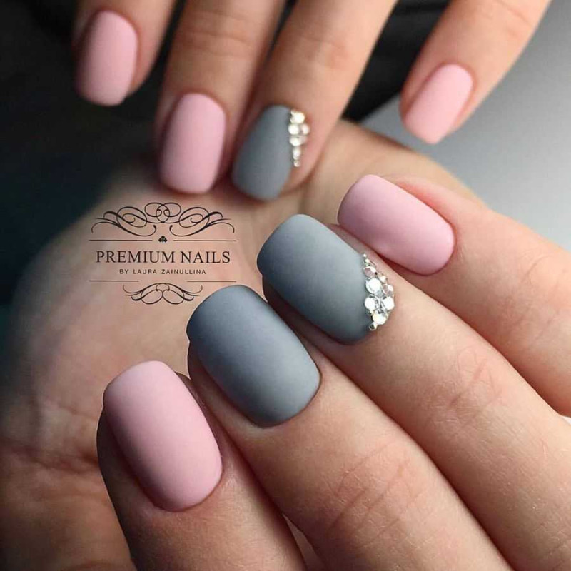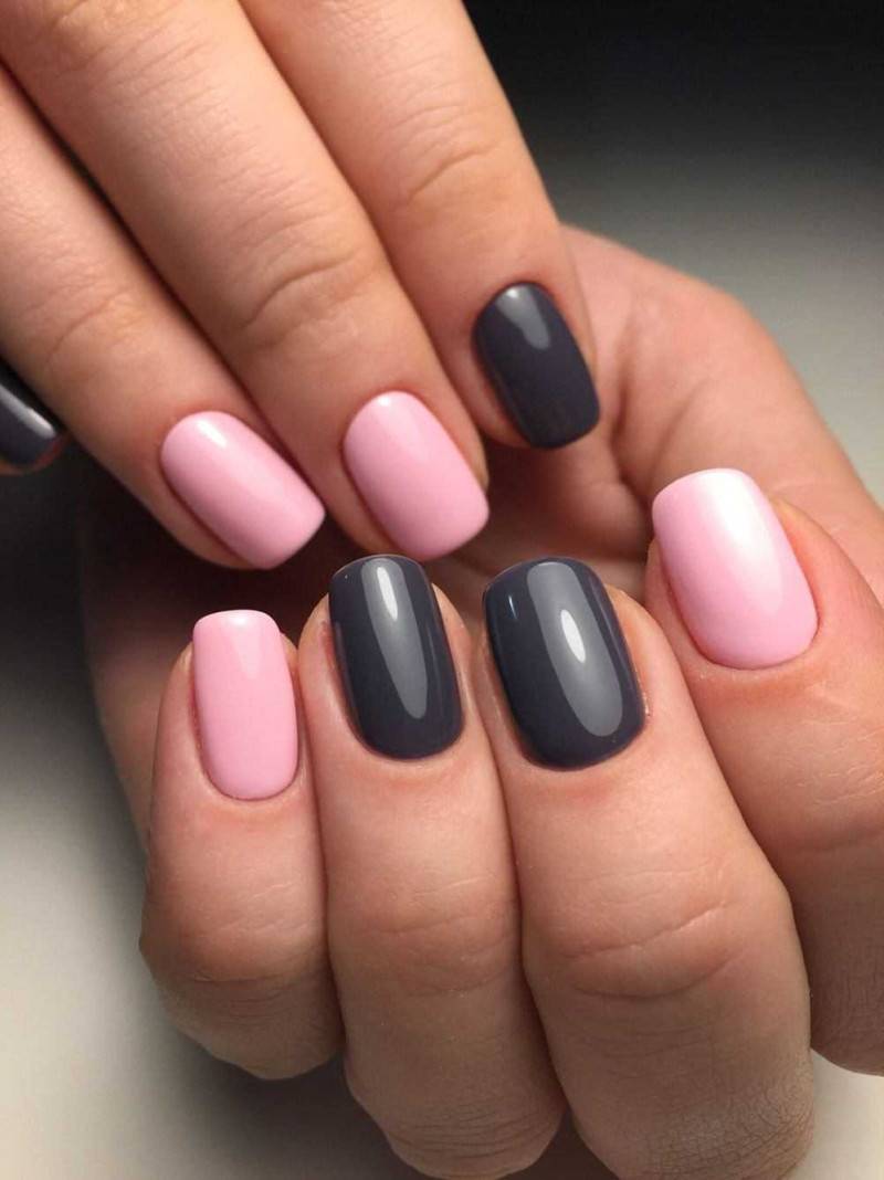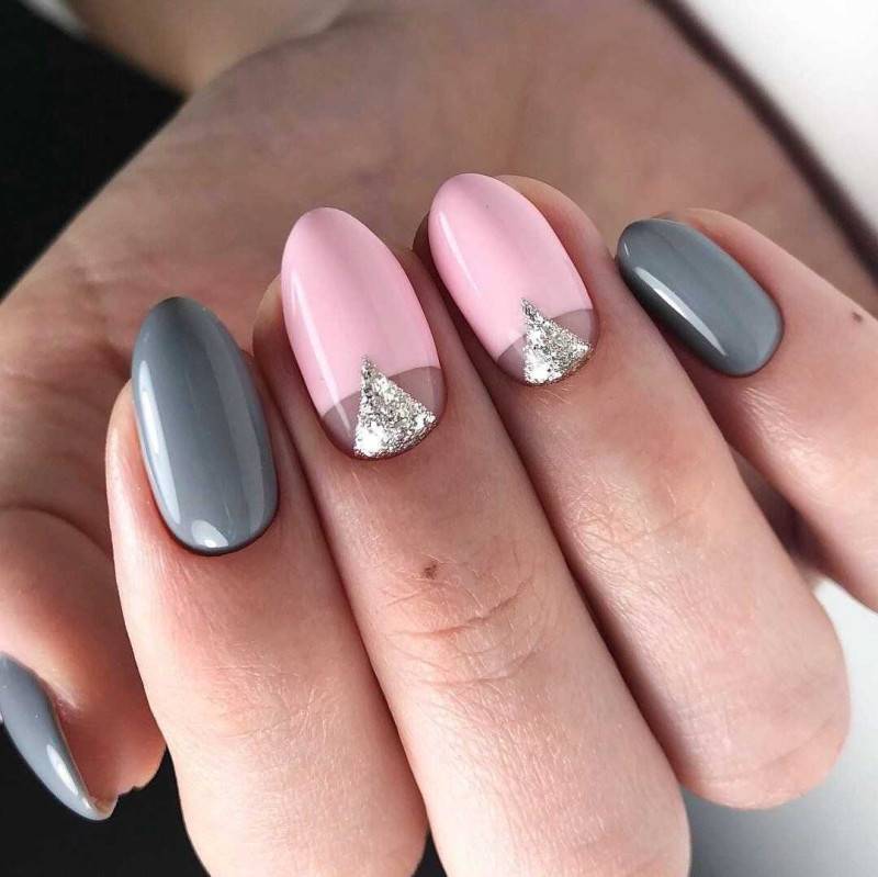 Сочетание в одном маникюре серого и розового можно назвать одним из самых гармоничных и популярных тандемов в маникюрном искусстве. Эти два цвета просто созданы, чтобы дополнять друг друга. При этом, светлый пепельный, дымчатый или французский серый чудесно сочетаются с нежным розовым, а насыщенный мокрый асфальт или графитовый прекрасно ладят с малиновым или оттенком фуксии.