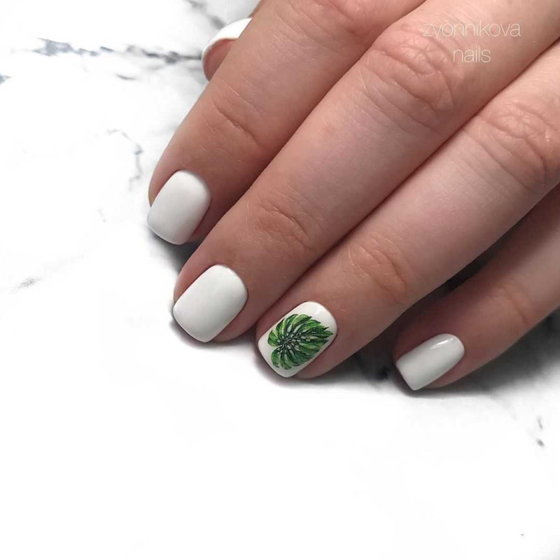 Помимо стемпинга и оригами, в тренде остаются модные принты. Их будут выполнять как на всех ногтях, так и только на акцентных. Рисунки гармонируют с глянцевым покрытием и матовым. Отлично ложатся на короткие ногти.