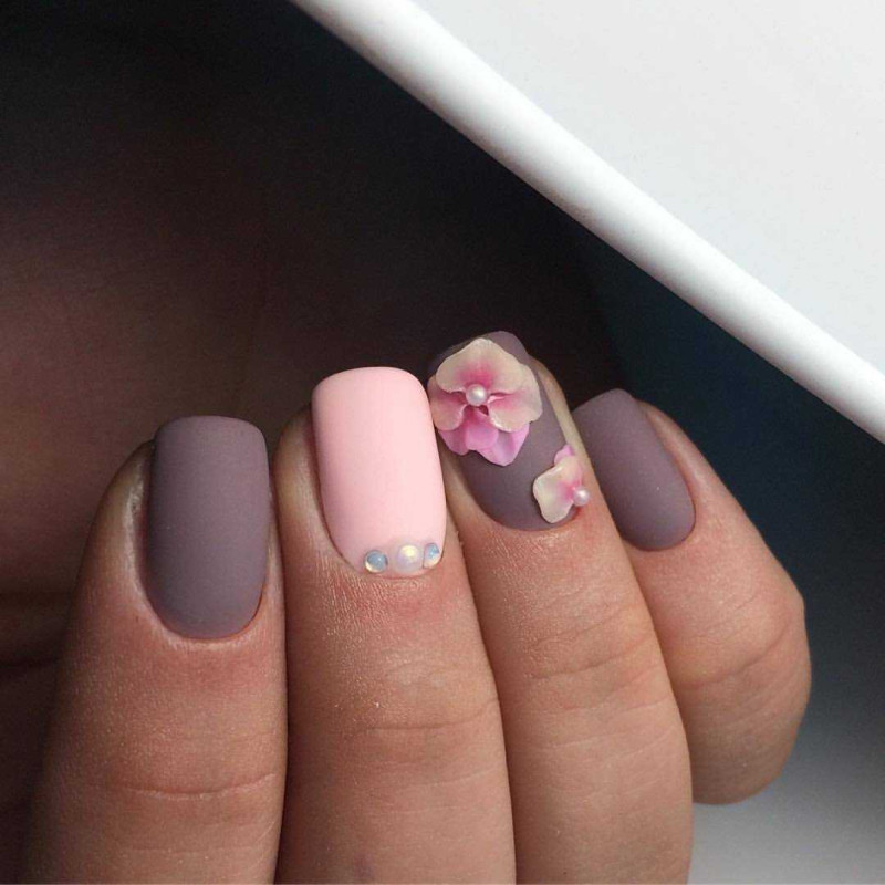 Изящный серо-розовый маникюр