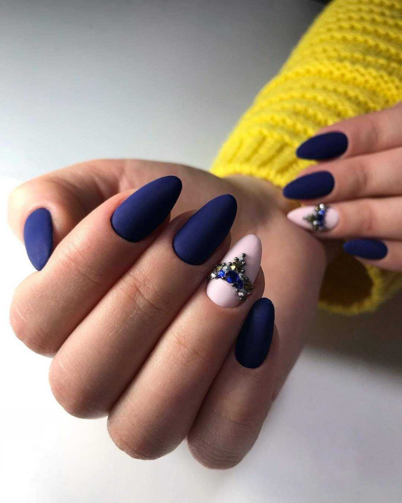 Основные цвета 2021 года продолжают расти до даты выполнения маникюра. Классический синий оттенок длинных ногтей для длинных ногтей используется в качестве дополнительного элемента дизайна. Длинные синие ногти выглядят очень вызывающе. В этом сезоне стилисты советуют обладательницам элегантных длинных ногтей выбирать нюдовую палитру или френч.