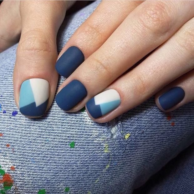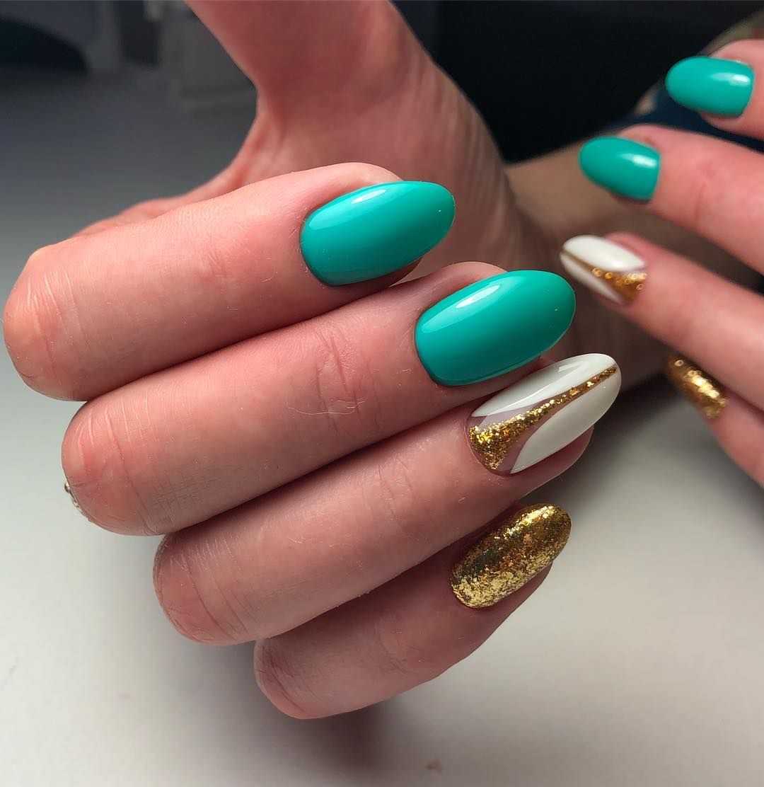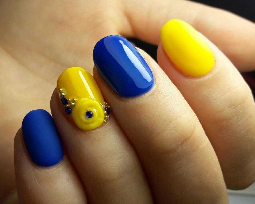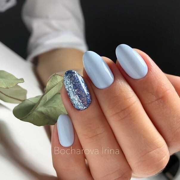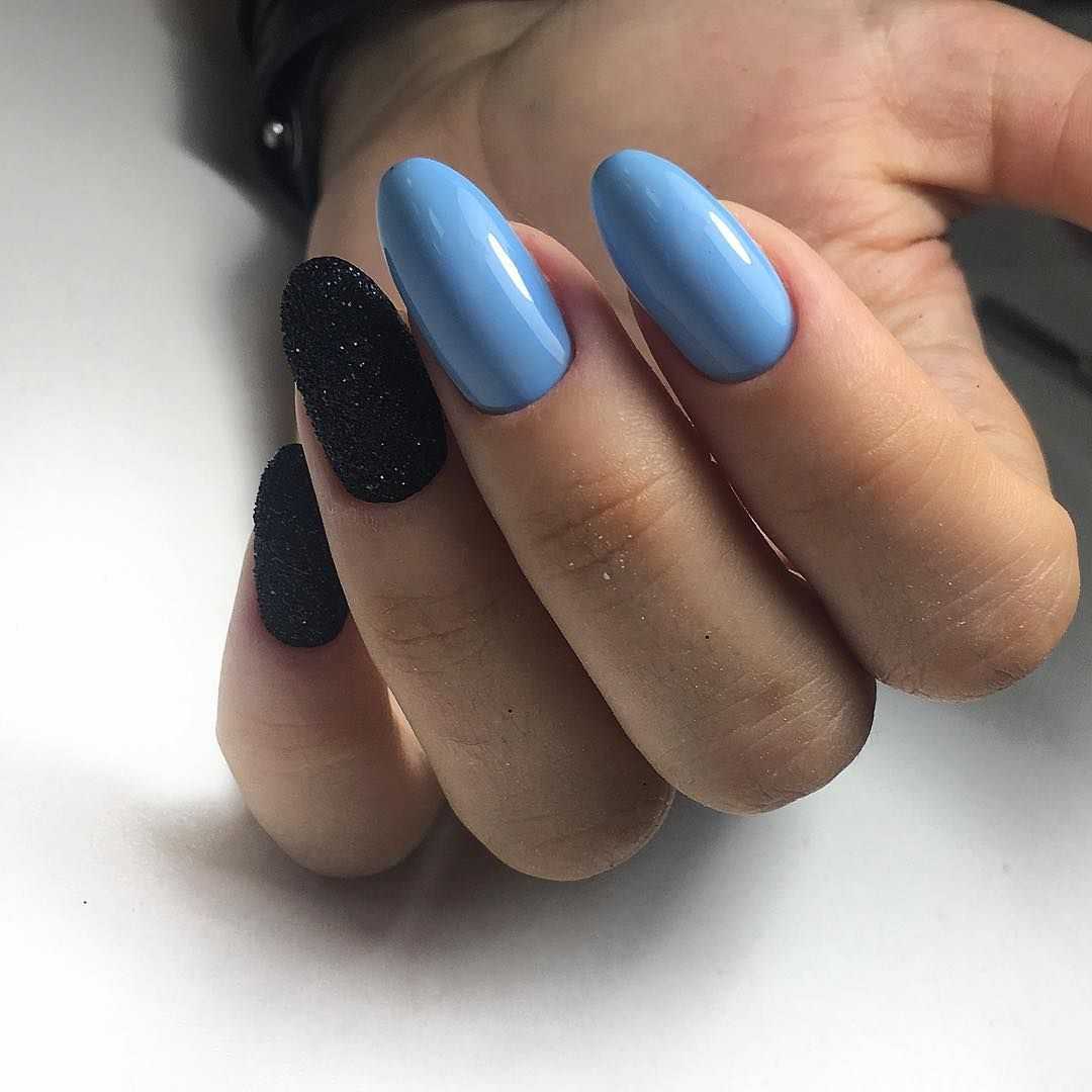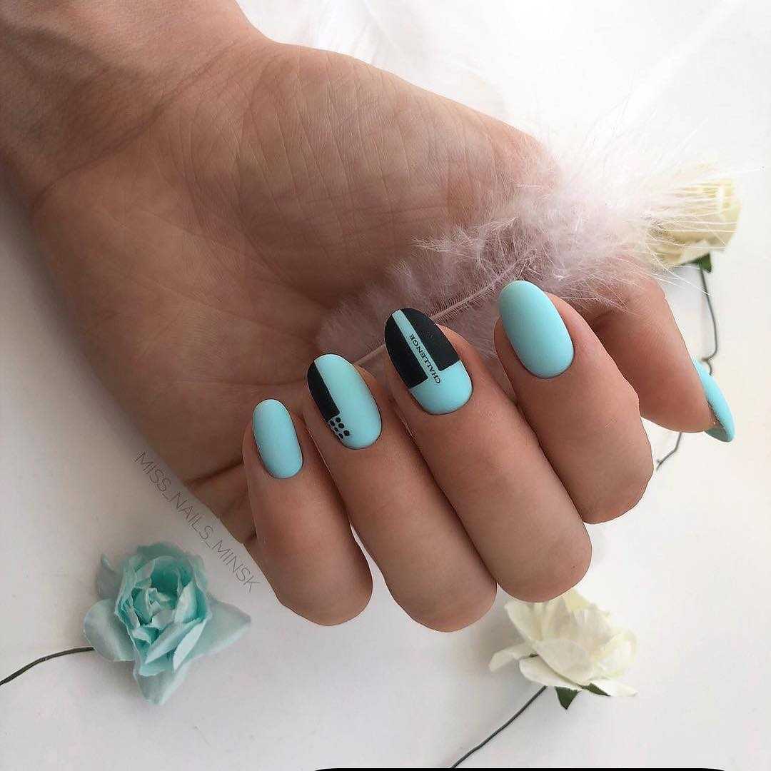 Такое сочетание отлично смотрится в деловых и повседневных нейл-артах. Например, выберите в качестве основного голубой оттенок и ориентируясь на цветовую схему, создайте красивое градиентное оформление на каждом ноготке.