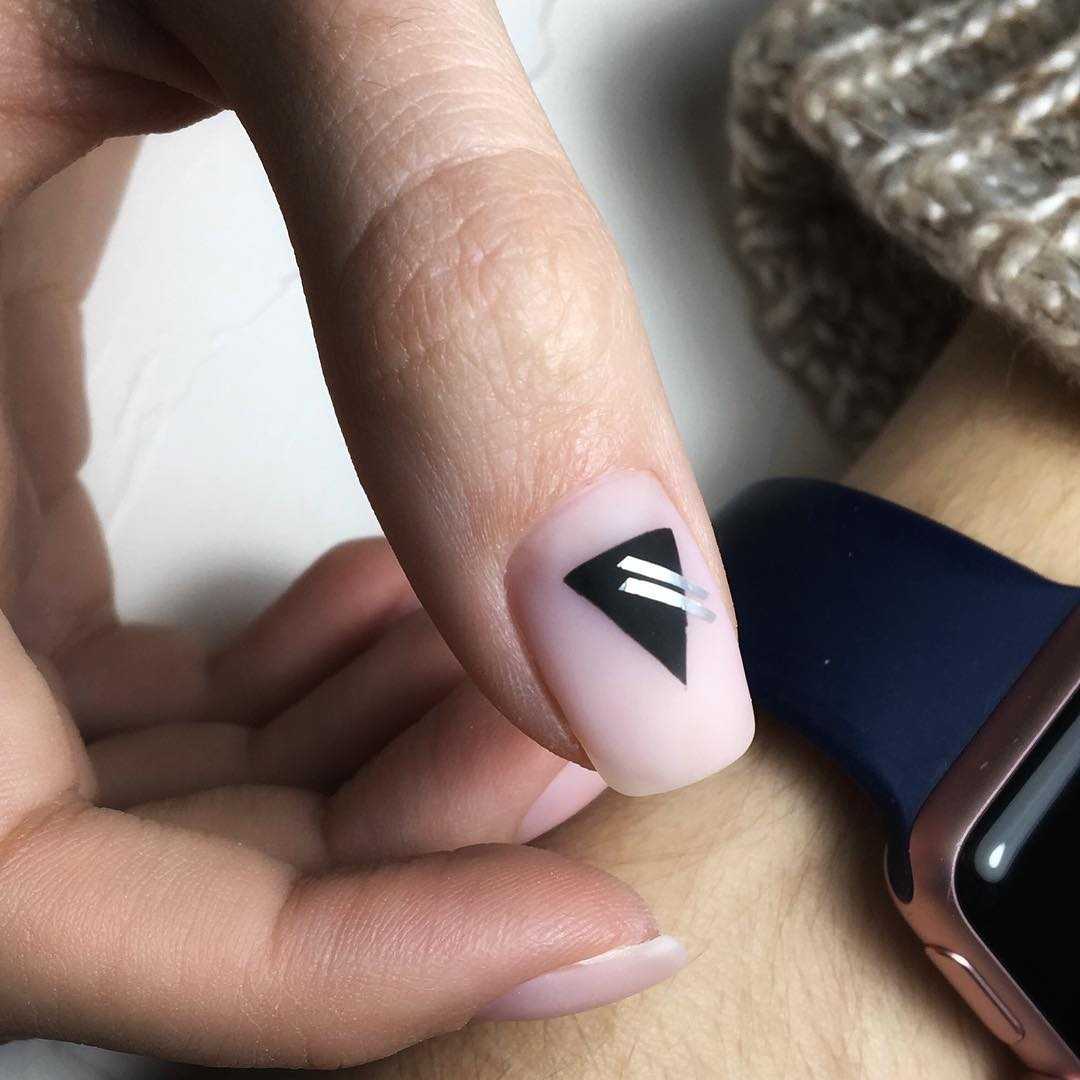 Геометрические рисунки не теряют своей популярности с 2016 года как в одежде. так и в маникюре. Трендом 2022 является черно-белая геометрия, но также не забывайте про главные цвета этого года. Градиент, полоски с использованием 2-3 оттенков, лунная геометрия, полоски на ногтях песком украсят абсолютно любую девушку.