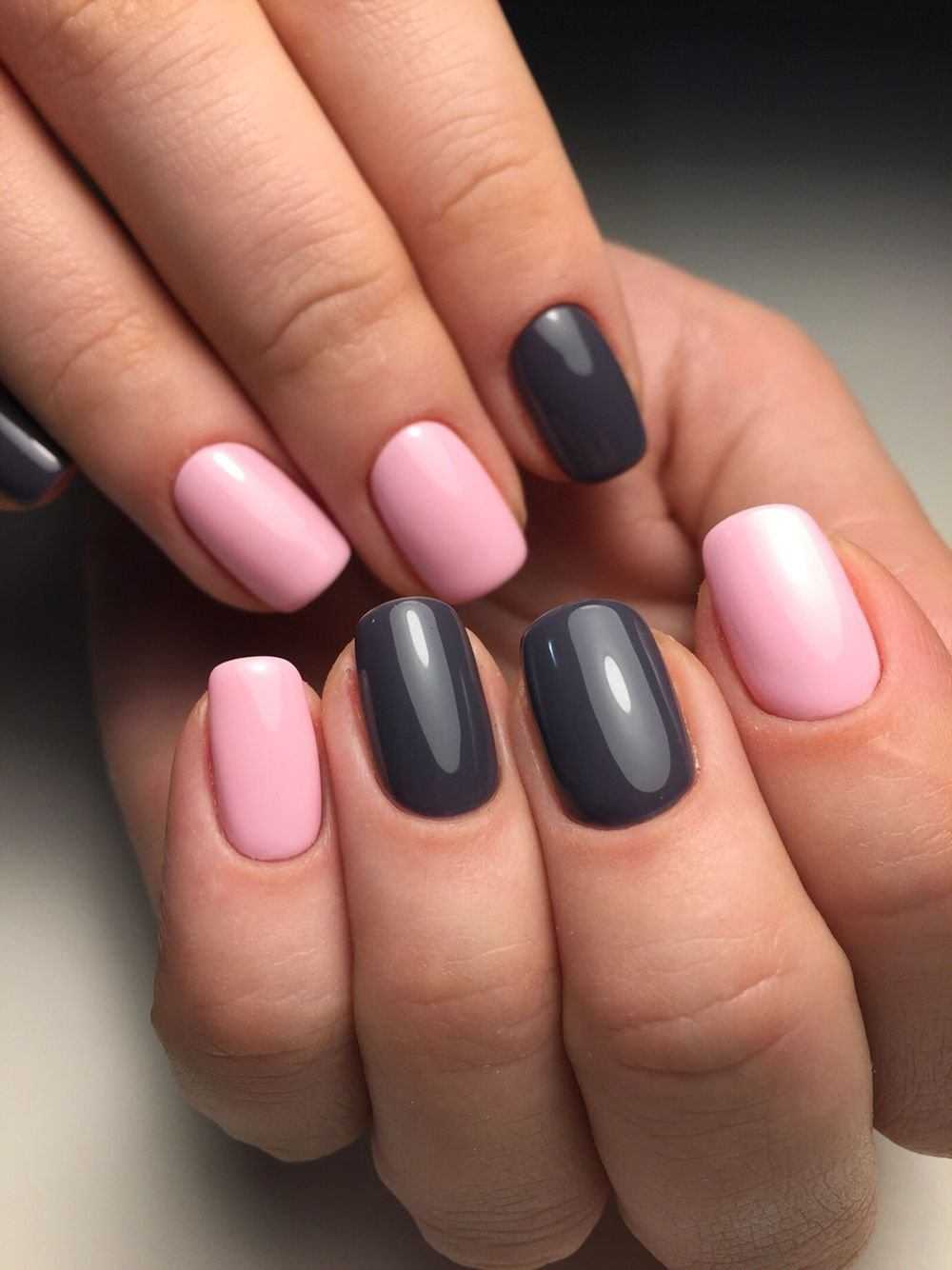 Сочетание в одном маникюре серого и розового можно назвать одним из самых гармоничных и популярных тандемов в маникюрном искусстве. Эти два цвета просто созданы, чтобы дополнять друг друга. При этом, светлый пепельный, дымчатый или французский серый чудесно сочетаются с нежным розовым, а насыщенный мокрый асфальт или графитовый прекрасно ладят с малиновым или оттенком фуксии.