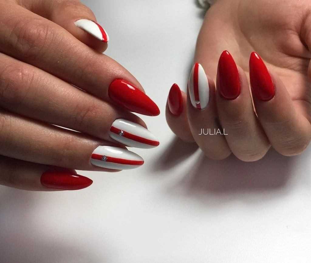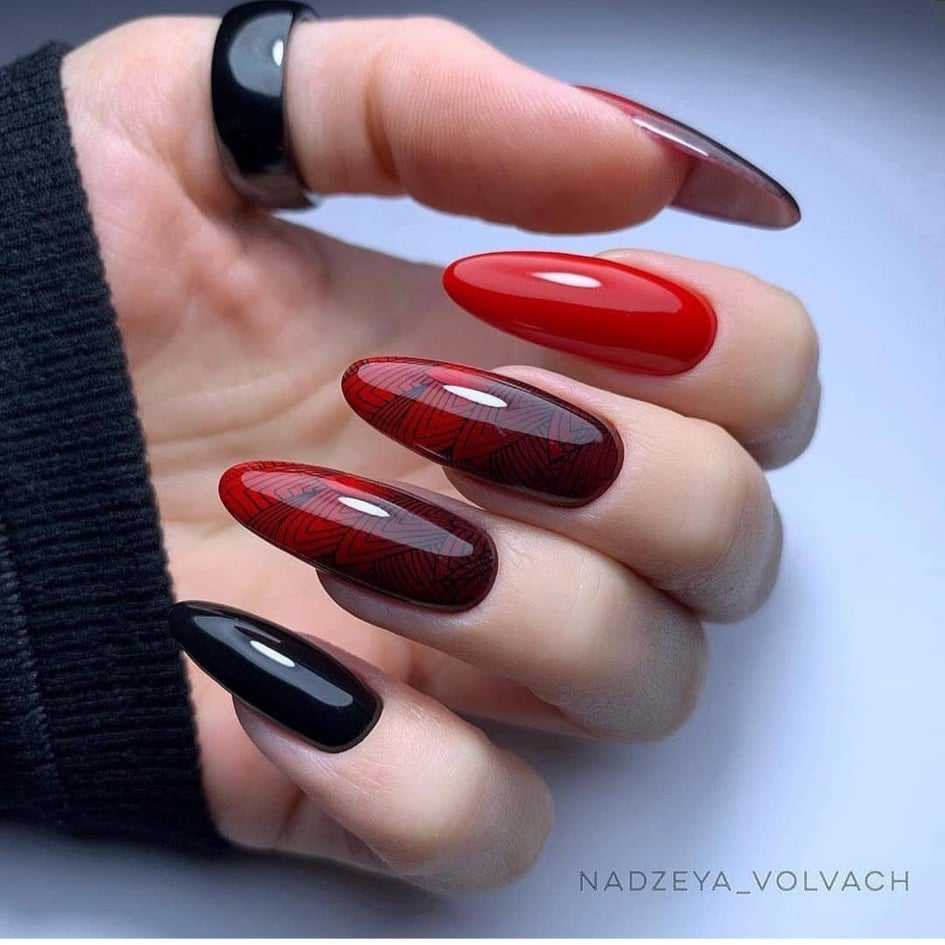 Маникюр красный с зеленым