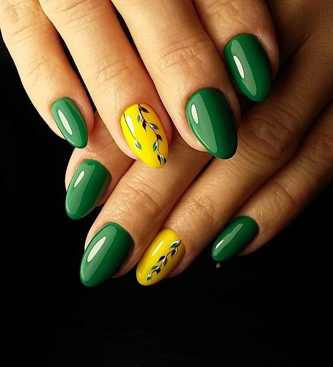 Еще один идеальный оттенок геля для коротких осенних ногтей — апимариновый зеленый. Мастера ногтевого сервиса рекомендуют сочетать его с черным, серым и желтым. Отличная идея для простого дизайна — матовая обложка. Благодаря этому ногти выглядят бархатистыми и, благодаря темному оттенку, не такими зараженными, как белые матовые ногти.
