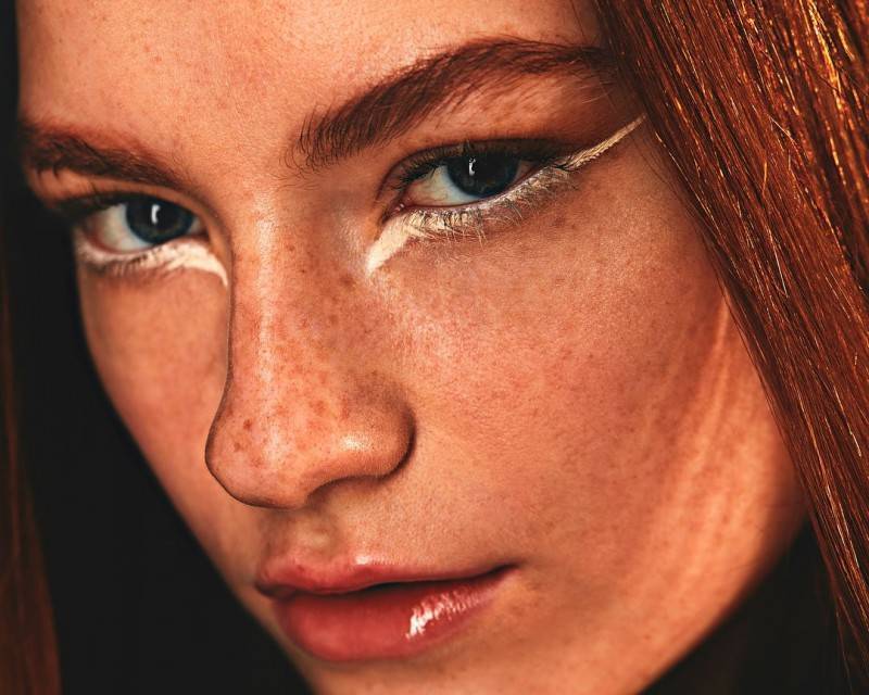 Теплый светлый пигмент хорошо сочетается с коричневой радужкой и нежно-персиковой кожей.