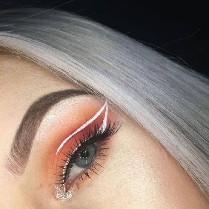 3. Оранжевый и коричневый — хит сезона. Белая подводка смотрится с таким макияжем очень круто.
