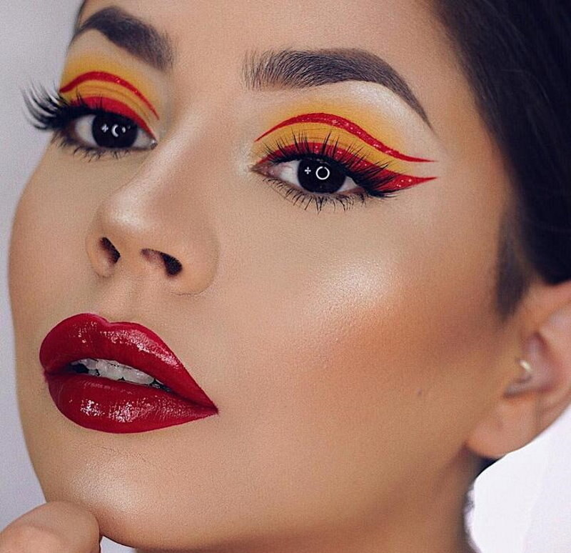 Желтый цвет относится к любимым оттенкам мейка в стиле «арт» и очень необычно смотрится на фото.