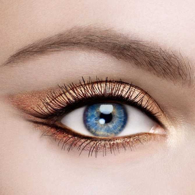 - Во-вторых, голубым и серым глазам подходят медные и фиолетовые подводки;