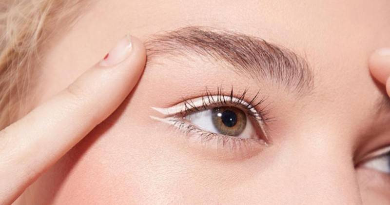 - Чтобы придать форму глазам, под бровями нужно провести молочную или перламутровую линию. Эта же хитрость придаст законченный вид макияжу в целом.