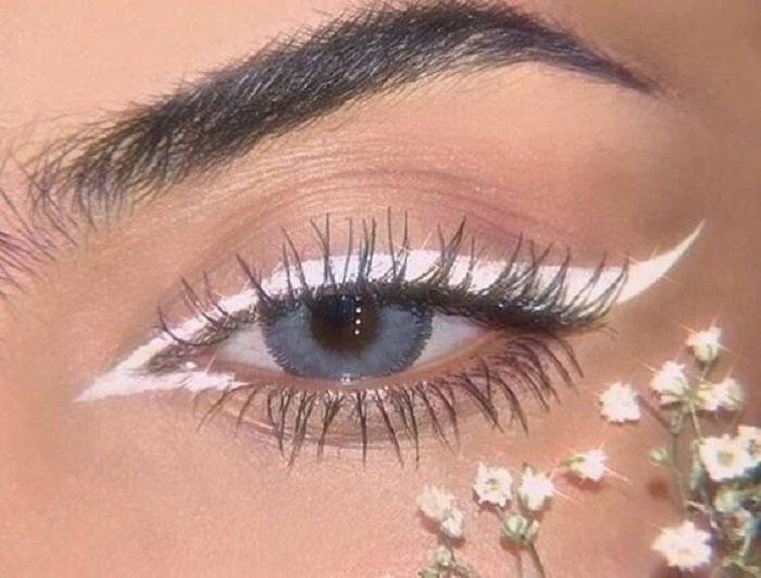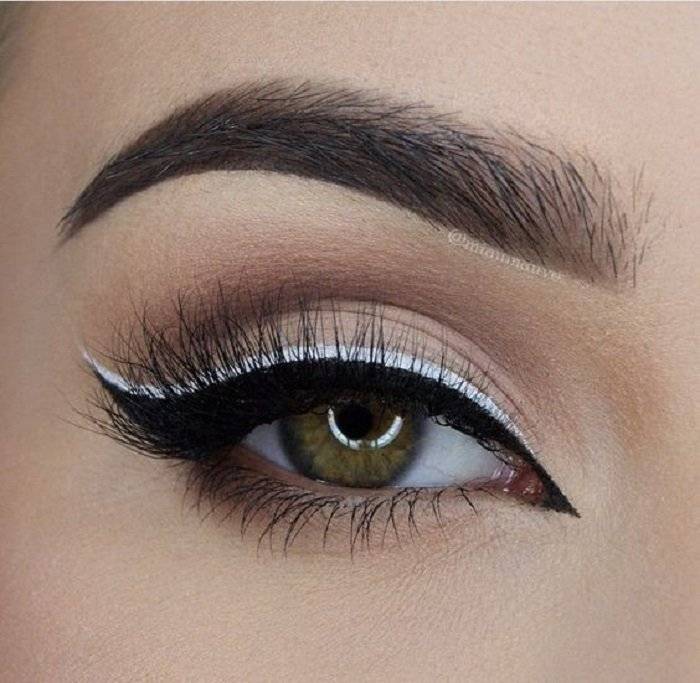 5. Если вы фанат «кошачьих глазок», то не отказывайте себе в удовольствии нарисовать стрелку белым пигментом.