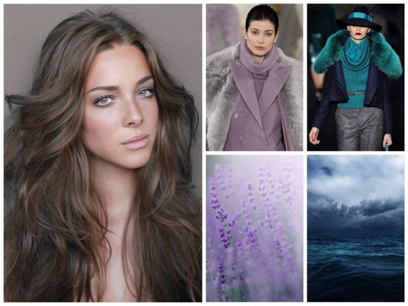 Все припудренные, пастельные оттенки, размытые, пасмурные. Природную гармонию подчеркнут мягкие оттенки. Чем темнее волосы, тем более темные оттенки цветов должны быть.