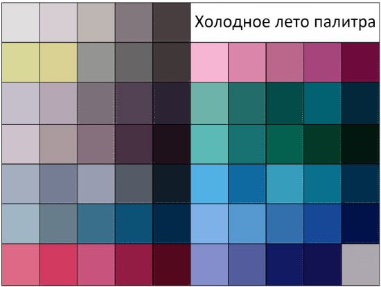 Сочетание оттенков в одежде подтипа cool summer
