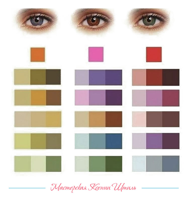 Особенно обладателей рассматриваемого цветотипа выдают глаза. Они могут иметь разные оттенки: темно-карий, зеленый, темно-синий, голубой, серый, черный. Однако это всегда ясный взгляд, обретающий дополнительную яркость и контрастность за счет ярких незатуманенных белков (в отличие от цветотипа лето). Макияж глаз для зимнего типа может быть выполнен в темной гамме. Эффектно выглядят дымчатый макияж, подводка карандашом, накладные ресницы. Ниже представлены подходящие оттенки теней в зависимости от цвета радужки глаз.