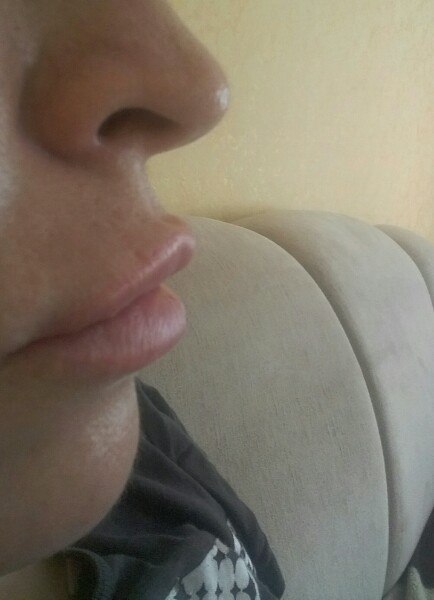 Фото «до и после». Доктор на своей страничке Вконтакте пишет, что для достижения подобных «секси-шмекси губ» введен 1 мл. филлера. Но возникает логичный вопрос: а сколько мл. филлера было уже введено ДО этого? На мой взгляд тут откровенный перебор: сглаженный рисунок губ, достаточно худое лицо с неестественно пухлыми губами-сардельками. В профиль заметно выпирание «свистка» сверх всяких приличий.